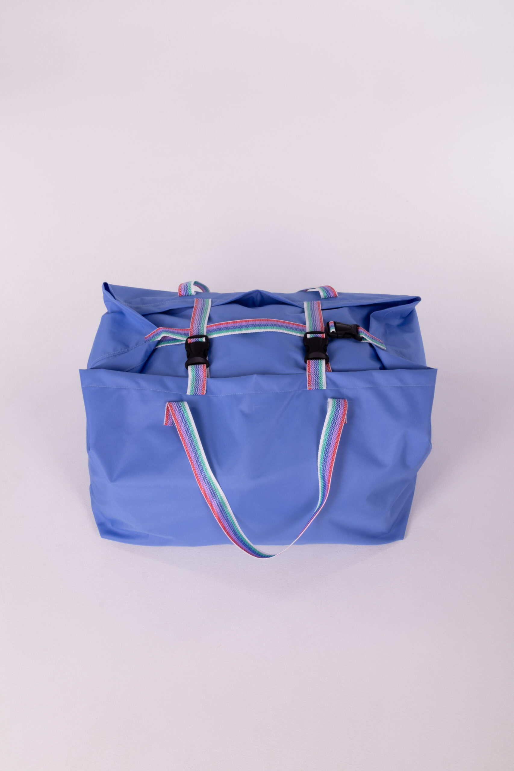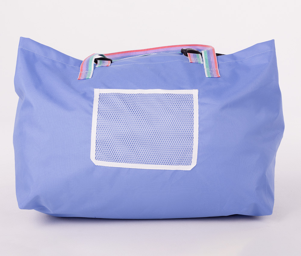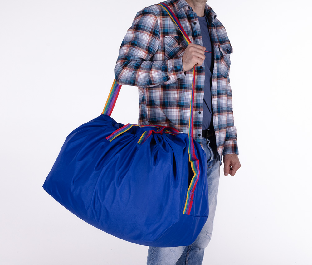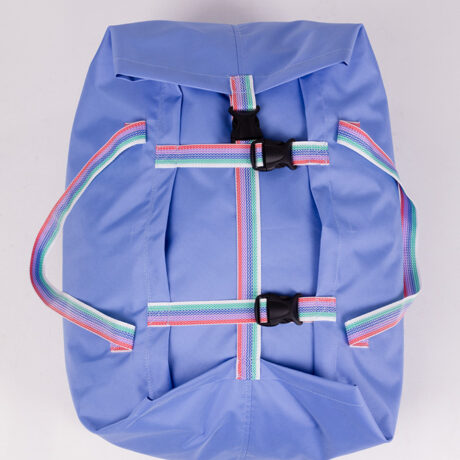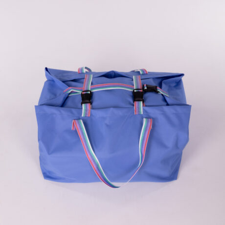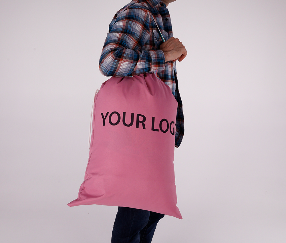 A strap bag with buckle closures designed for transporting clean laundry to laundries, hotels, and hospitals. The standard model features two handles for easy carrying.